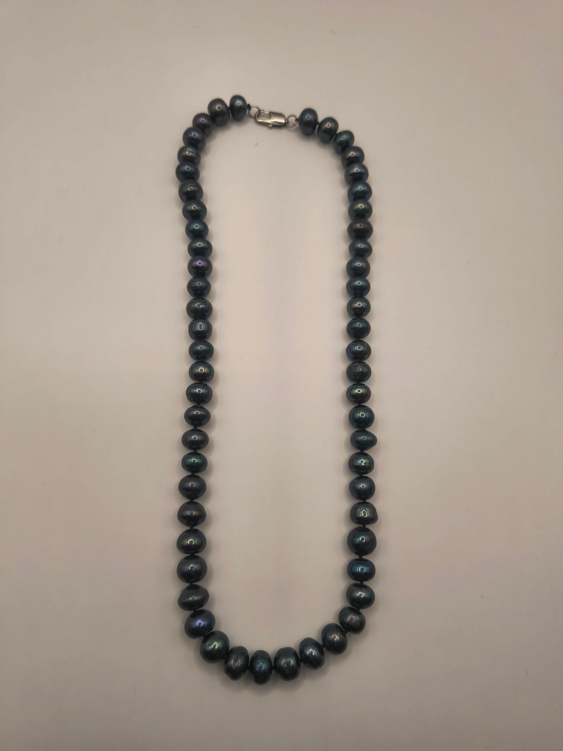 Heighten your style with the refined elegance of this black freshwater pearl necklace. Featuring natural, lustrous pearls, this timeless piece radiates sophistication and grace. Made with knotted string to ensure versatility, it transitions seamlessly from everyday wear to the most formal occasions. A symbol of classic luxury, this necklace is an exquisite choice for those who appreciate the enchanting beauty of fresh water pearls. Whether as a personal indulgence or a thoughtful gift, it’s a treasure that embodies enduring charm.