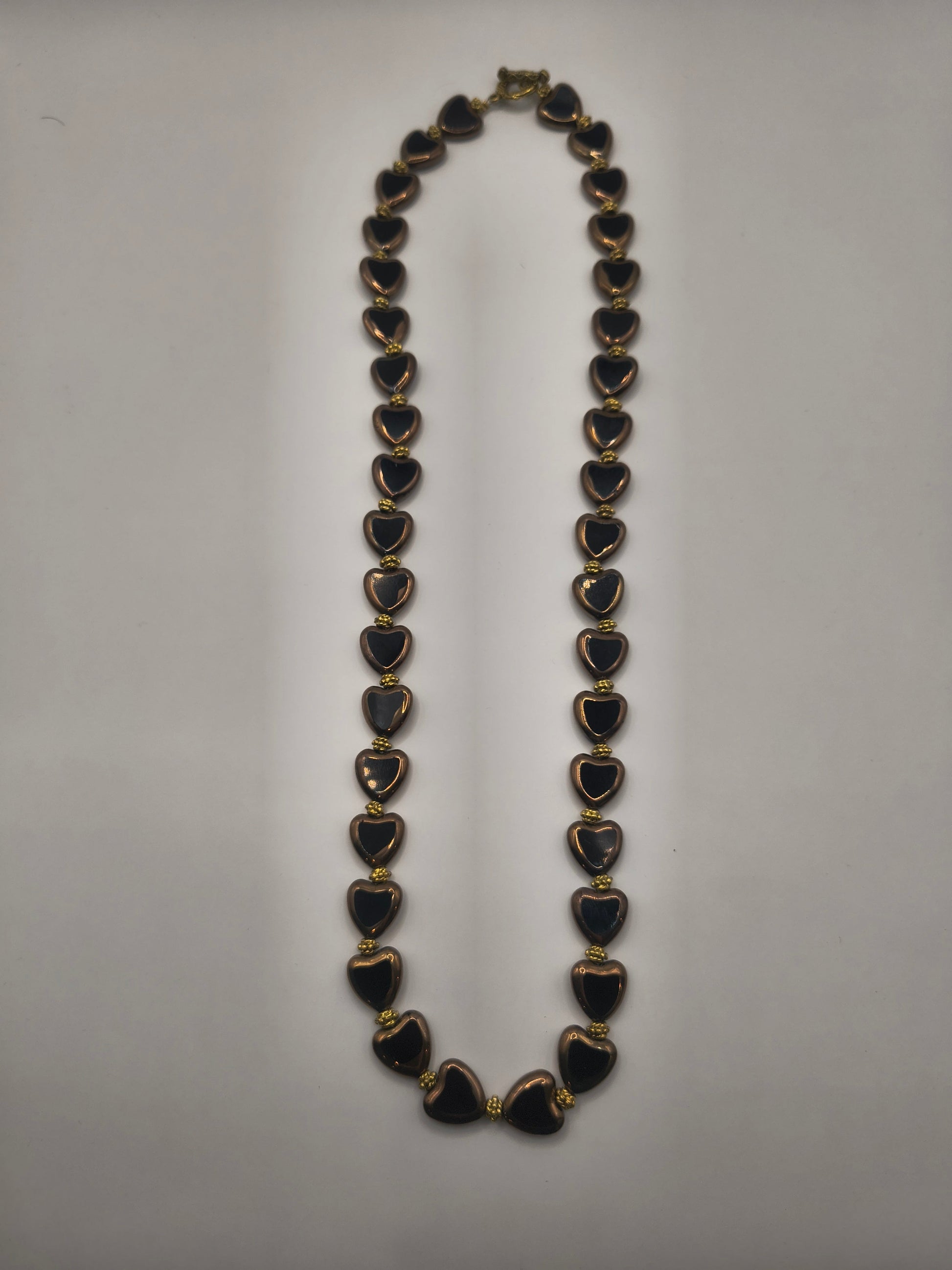 Complete your look with this stunning handmade black Venetian glass necklace. Featuring heart shaped beads in opaque black alongside a vintage style brass finish, this is a perfect match for any outfit. It's lightweight, comfortable to wear, and perfect for adding a little charm to your outfit. Treat yourself or gift them to someone special to make their day extra bright!