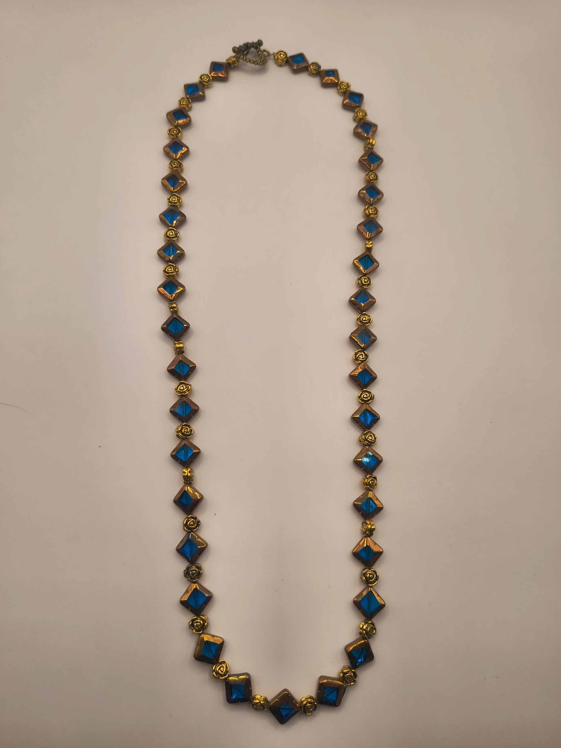 Complete your look with this stunning handmade blue Venetian glass necklace. Featuring faceted diamond shaped beads in rich blue alongside a vintage style brass finish, makes this a perfect match for any outfit. It's lightweight, comfortable to wear, and perfect for adding a little charm to your outfit. Treat yourself or gift them to someone special to make their day extra bright!
