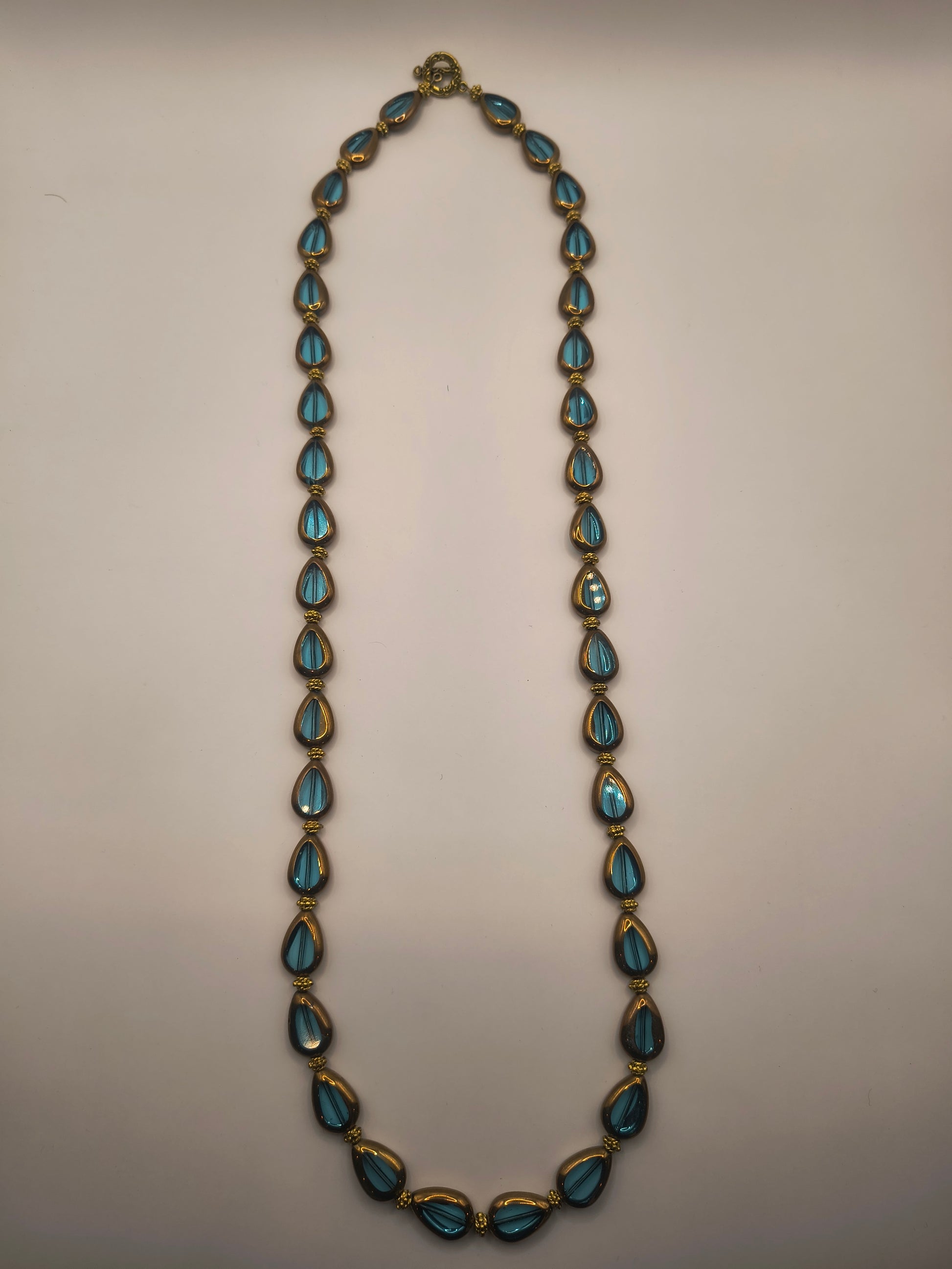 Complete your look with this stunning handmade blue Venetian glass necklace. Featuring teardrop beads in rich blue alongside a vintage style brass finish, this is a perfect match for any outfit. It's lightweight, comfortable to wear, and perfect for adding a little charm to your outfit. Treat yourself or gift them to someone special to make their day extra bright!