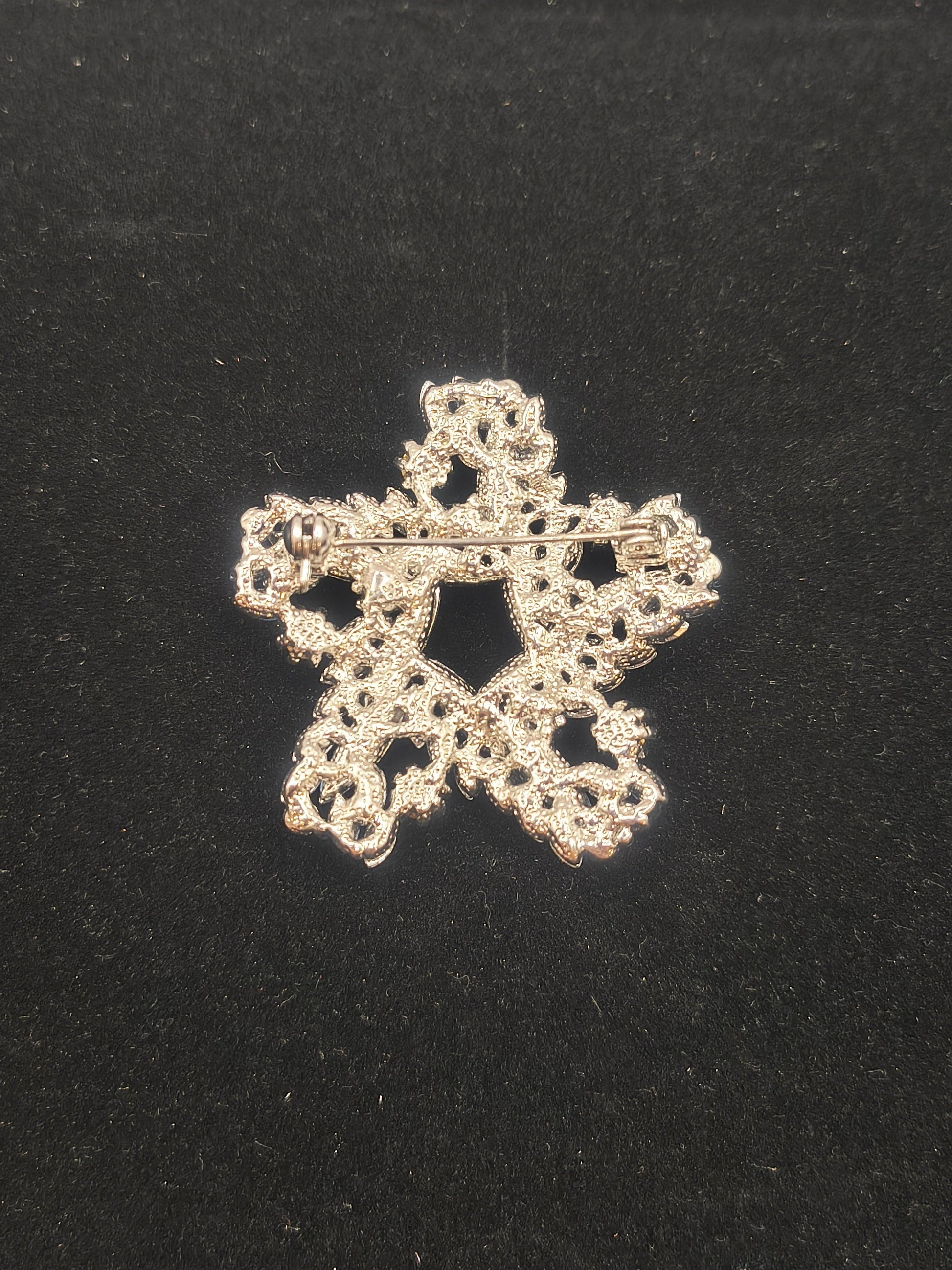 Add a touch of brilliance to your style with this stunning blue shaded glass brooch in the shape of a star, featuring intricately crafted details and sparkling accents that capture the light beautifully. Perfect for those who appreciate unique designs and elegant accessories, this star-shaped brooch is ideal for adding glamour to casual outfits, elevating formalwear, or gifting to someone special.