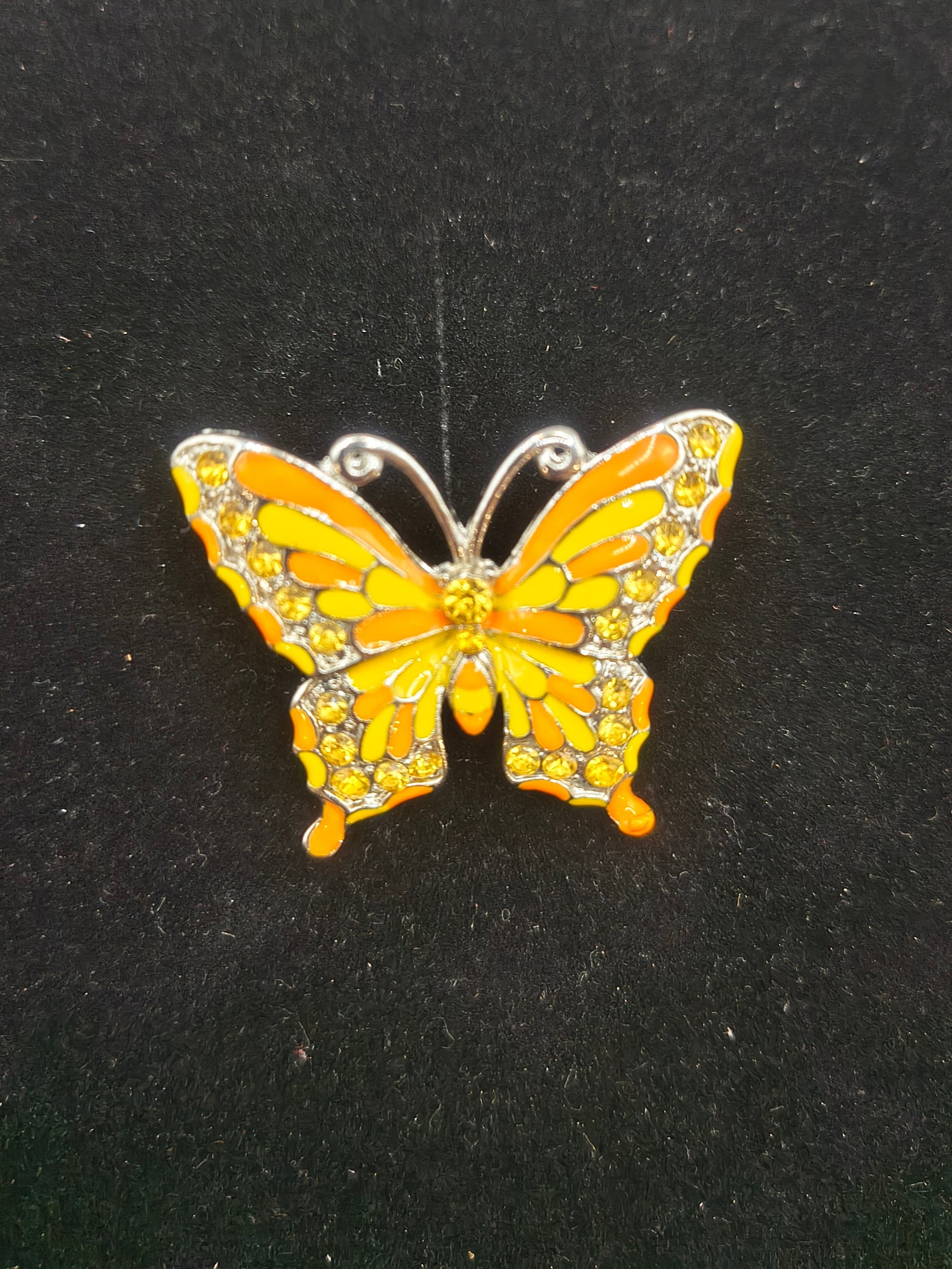 Add a vibrant touch to your style with this stunning yellow and orange butterfly brooch, featuring intricately detailed wings in warm, radiant hues and accented with delicate crystal details. Perfect for those who appreciate unique designs and elegant accessories, this brooch is ideal for brightening up casual outfits, adding flair to formalwear, or gifting to someone special. Embrace the beauty of craftsmanship and sophistication with this eye-catching piece.