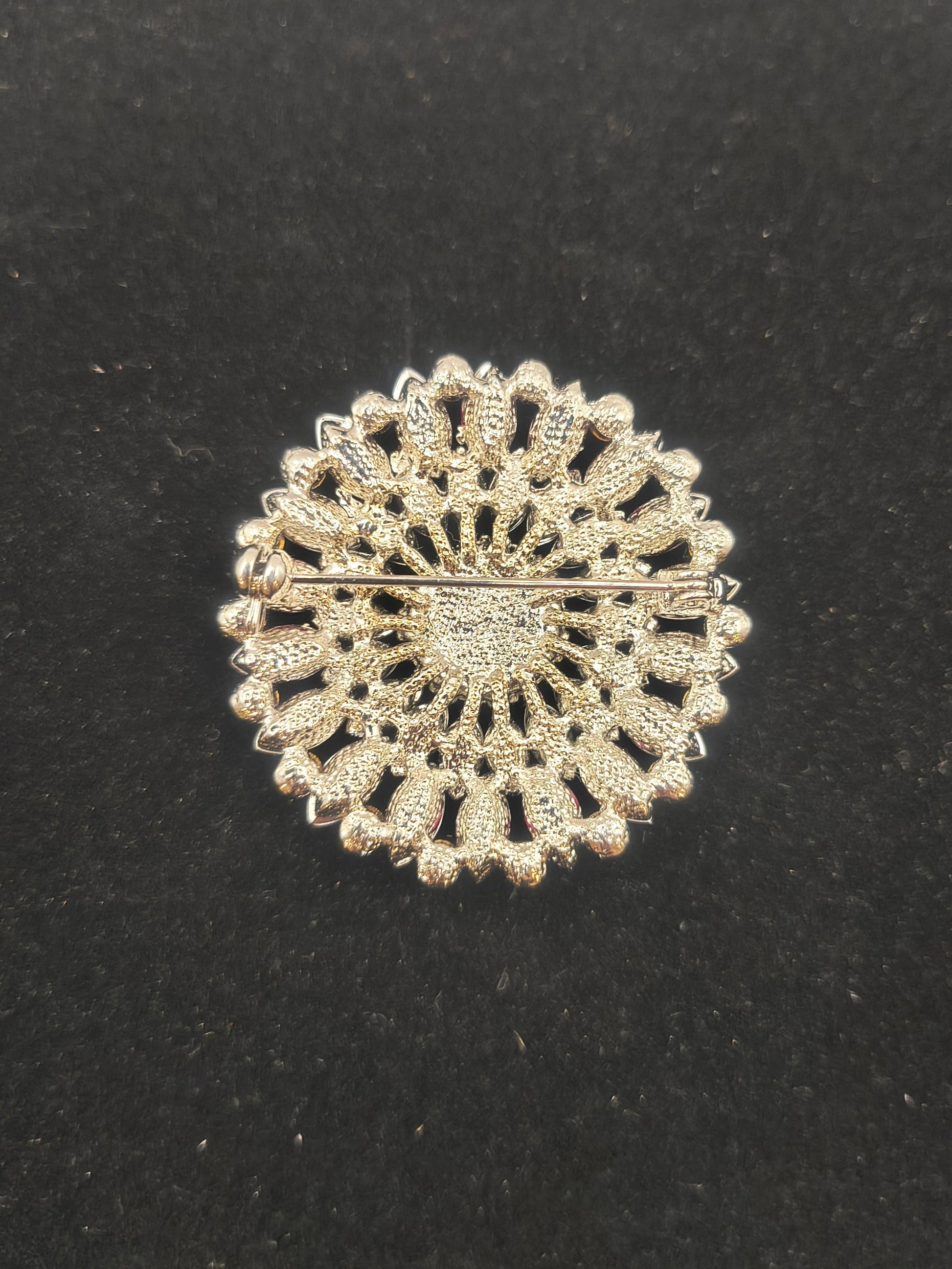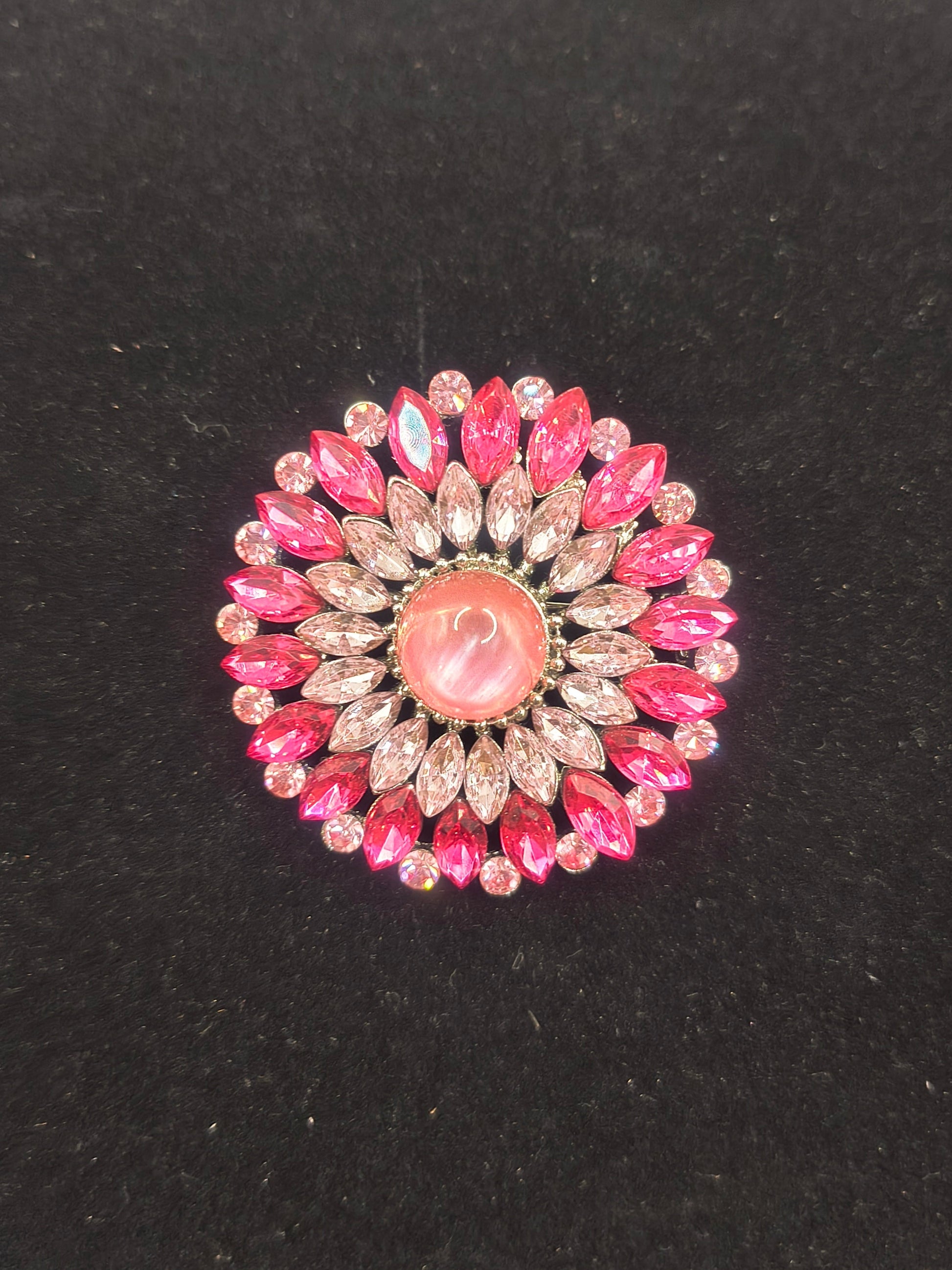 Enhance your style with this exquisite pink brooch, designed in the shape of a circular flower with intricate detailing and radiant accents that exude charm. Perfect for those who appreciate floral designs and vintage accessories, this brooch adds a graceful touch to formal attire, special occasions, or as a luxurious gift.