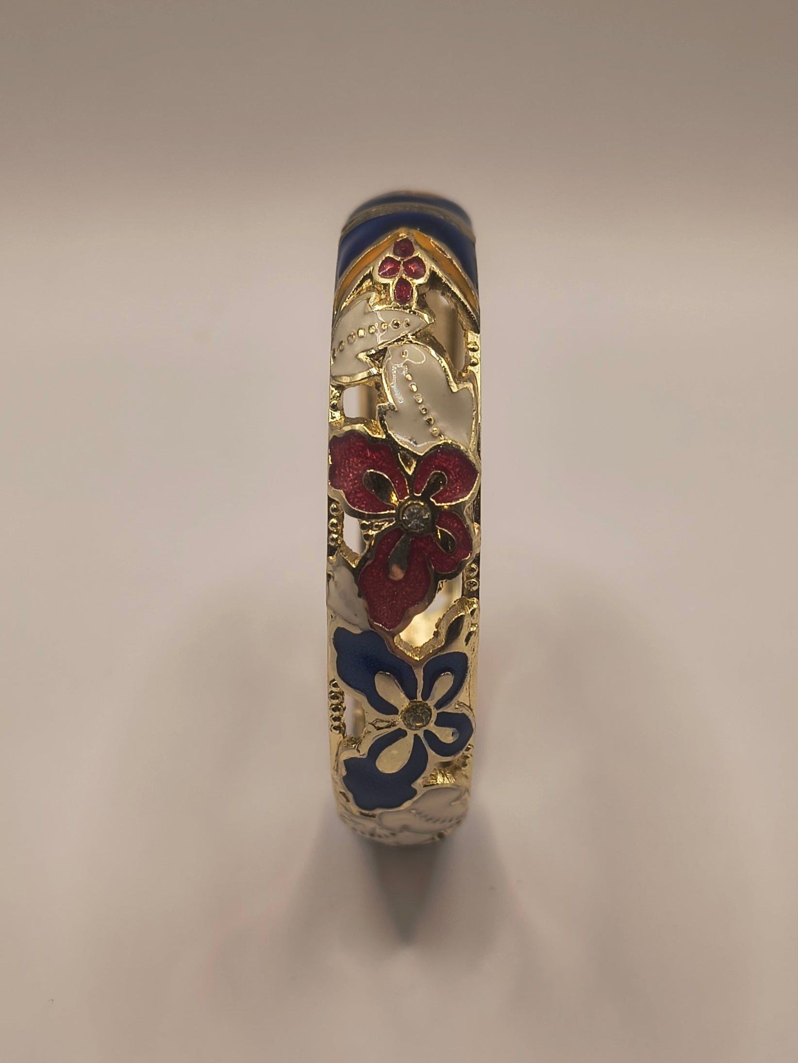 Bring a touch of nature to your wrist with our Floral Alloy Bangle. With its delicate flower design and sleek, shiny finish, this bangle adds the perfect pop of color to any outfit. Made from high-quality alloy, it's both durable and lightweight, making it comfy to wear all day long. Featuring a smart hinge design, it opens and closes easily, allowing you to slip it on and off with no hassle. Simple, stylish, and versatile, it’s perfect for stacking or wearing solo.